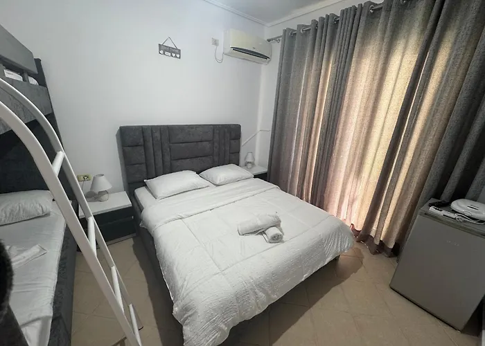 Une kitchenette est équipée d'une bouilloire électrique et d'un réfrigérateur à la disposition des hôtes. Il faut environ 5 minutes à pied pour atteindre le Baci A Tutti et Beach bar & Restaurant Shark. L'arrêt de bus le plus proche est Sarande-Ksamil-Butrint, situé à moins de 5 minutes à pied.